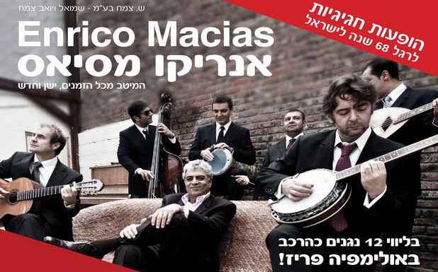 A l’occasion des 68 ans de l’état d’Israël , Enrico Macias revient pour une tournée à travers le pays accompagné d’une formation de 12 musiciens